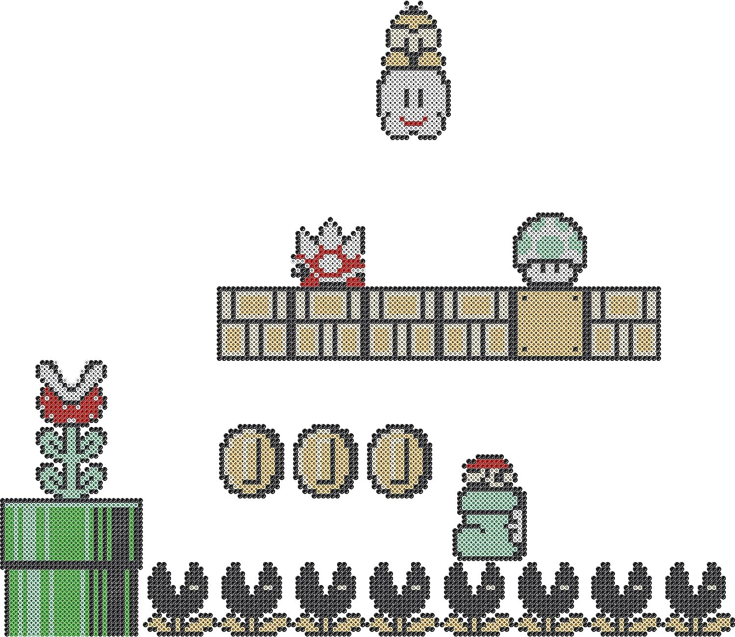 - Includes (14) double-sided pages with 61 different Super Mario Perler bead patterns.