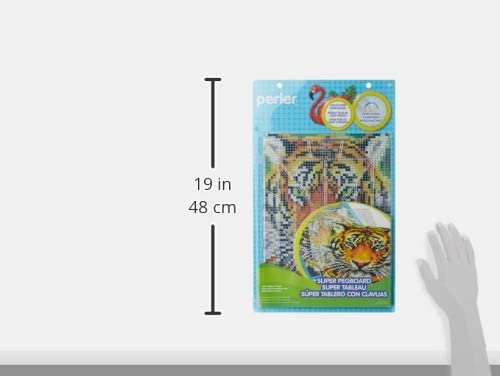 New and improved! The Perler Super Pegboard has been modified to make creating larger-than-life fuse bead projects even easier. The size of this clear pegboard has been redesigned to hold more beads and tabs have been added so it can interlock with other Perler pegboards. Additional supports on the underside of the pegboard make it stronger and more durable. Includes 1 super pegboard (approx. 10” x 13.25”), 1 sheet of reusable ironing paper and easy-to-follow fusing instructions. A full-size tiger pattern and additional design ideas are also included on the packaging as a bonus! For ages 6 and up.
