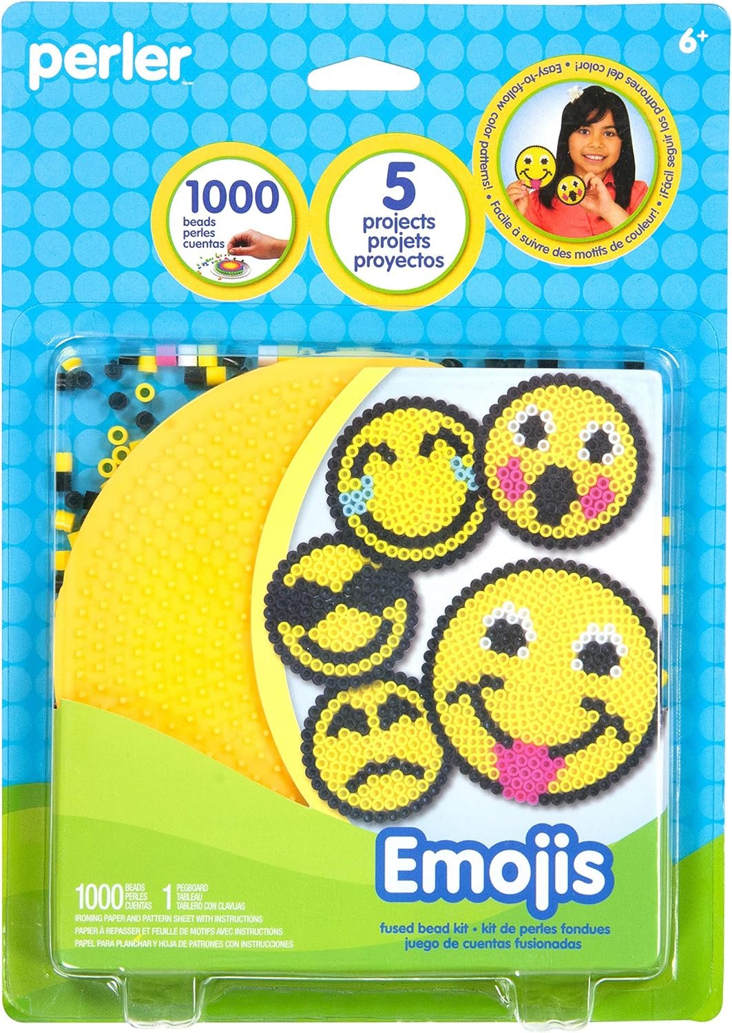 Perler Beads Smiley Face Emoji Fused Bead Kit, 1003pcs, 5 Projects