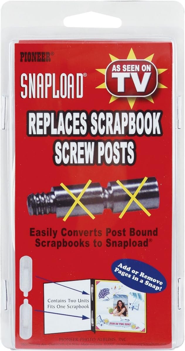 This Snapload kit replaces scrapbook screw posts. Easily converts postbound scrapbooks to Snapload style. Contains 2 units to fit 1 scrapbook.