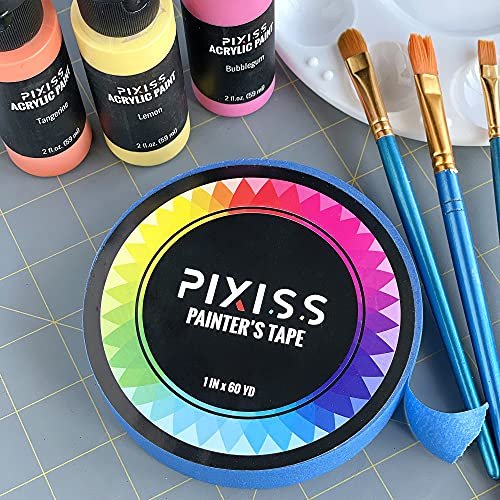 PIXISS Artist Tape creates sharp, clean paint lines and is quick & easy to remove. Leaves behind no sticky residue. Adheres quickly to painted walls, trim, wallpaper, glass, wood, and more! 60 Yards in length, 1" wide