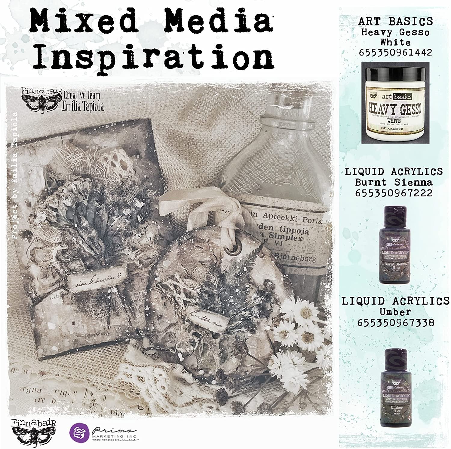 Prima marketing-art basics heavy gesso. White opaque matte and ground acrylic! works well on canvas wood paper metal chipboard fabric plastic and more! dries quickly. Works well for a variety of color products providing a smooth non-yellowing chalky background. Gesso is water-based but permanent and flexible after drying. Will mix with pigments or acrylic paints to create a range of customized colored grounds. This package contains one 8.5oz Jar of heavy gesso. Archival safe. Non-Toxic. Conforms to ASTM d4236. Imported.