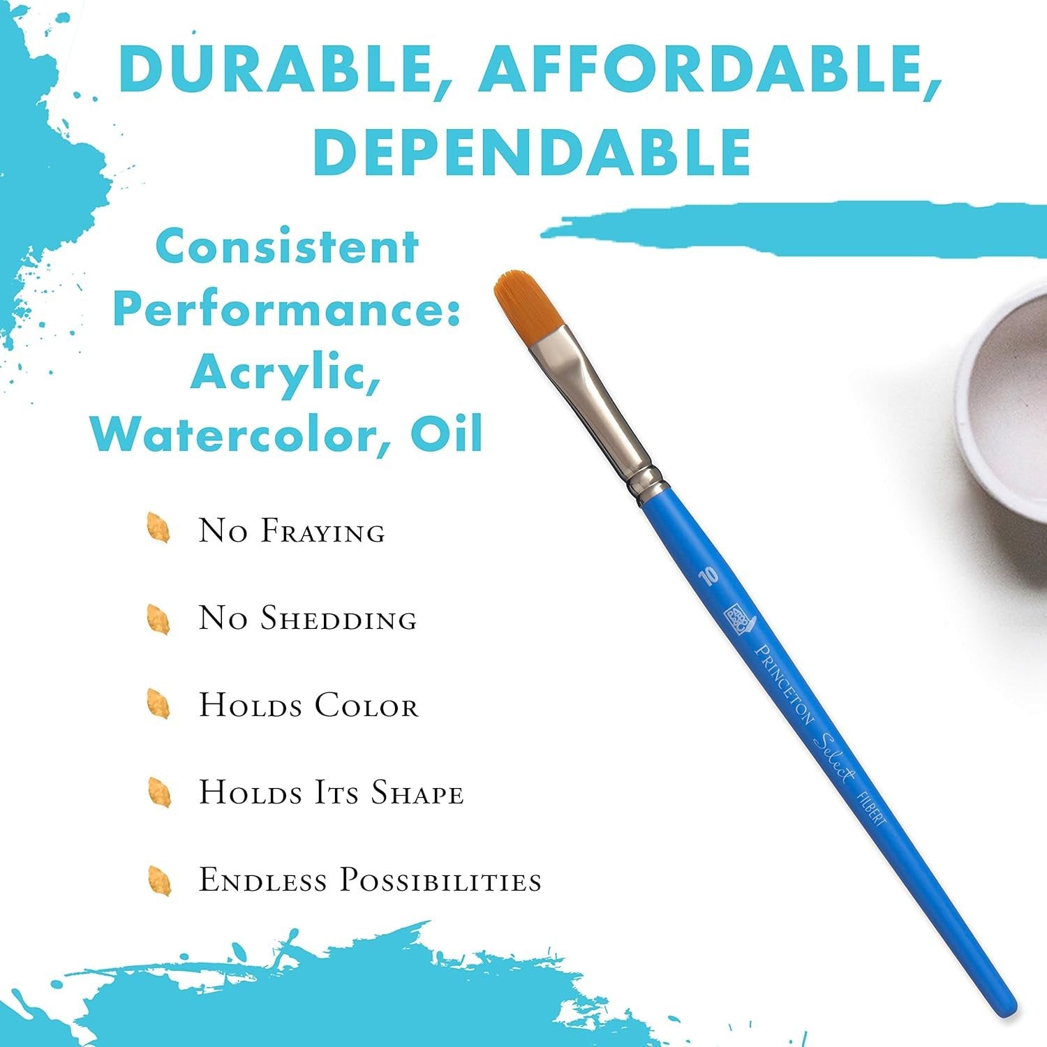 Bring your paintings to life with Princeton's best-selling paint brushes, Select Artiste. The fine craftsmen of Princeton created this vast collection of brushes, which includes 29 distinct shapes and 108 individual styles. Designed with a variety of synthetic hair, these short-handled brushes enable you to express your creativity. They lend themselves beautifully to all painting styles, including detailing, blocking, shading, lettering, applying washes and more. Select Artiste brushes are durable, affordable and dependable, making them perfect for professionals and amateurs alike.