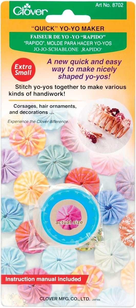 Quick and easy to make nice shape yo-yos. Simply stitch yo-yo's together into various kinds of handwork. This template is perfect for embellishments for covers, table runners, bags and more. Approx. Finish (3/4 inch; 20mm).