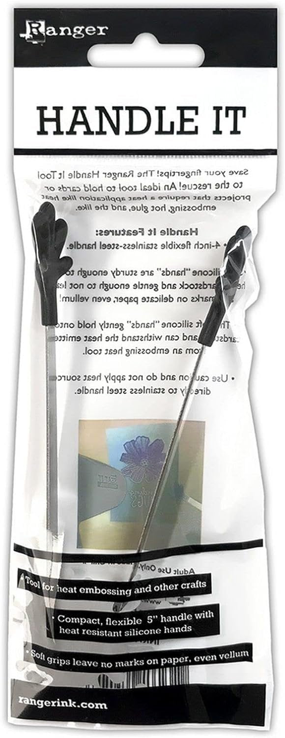 Save your fingertips! The Ranger Handle It Tool to the rescue! An ideal tool to hold cards or projects that require a heat application like heat embossing, hot glue, and the like. Soft silicone hands are sturdy enough to hold heavy cardstock and gentle enough to not leave any marks on delicate paper, even vellum! Features a 4-inch flexible stainless-steel handle. Imported.