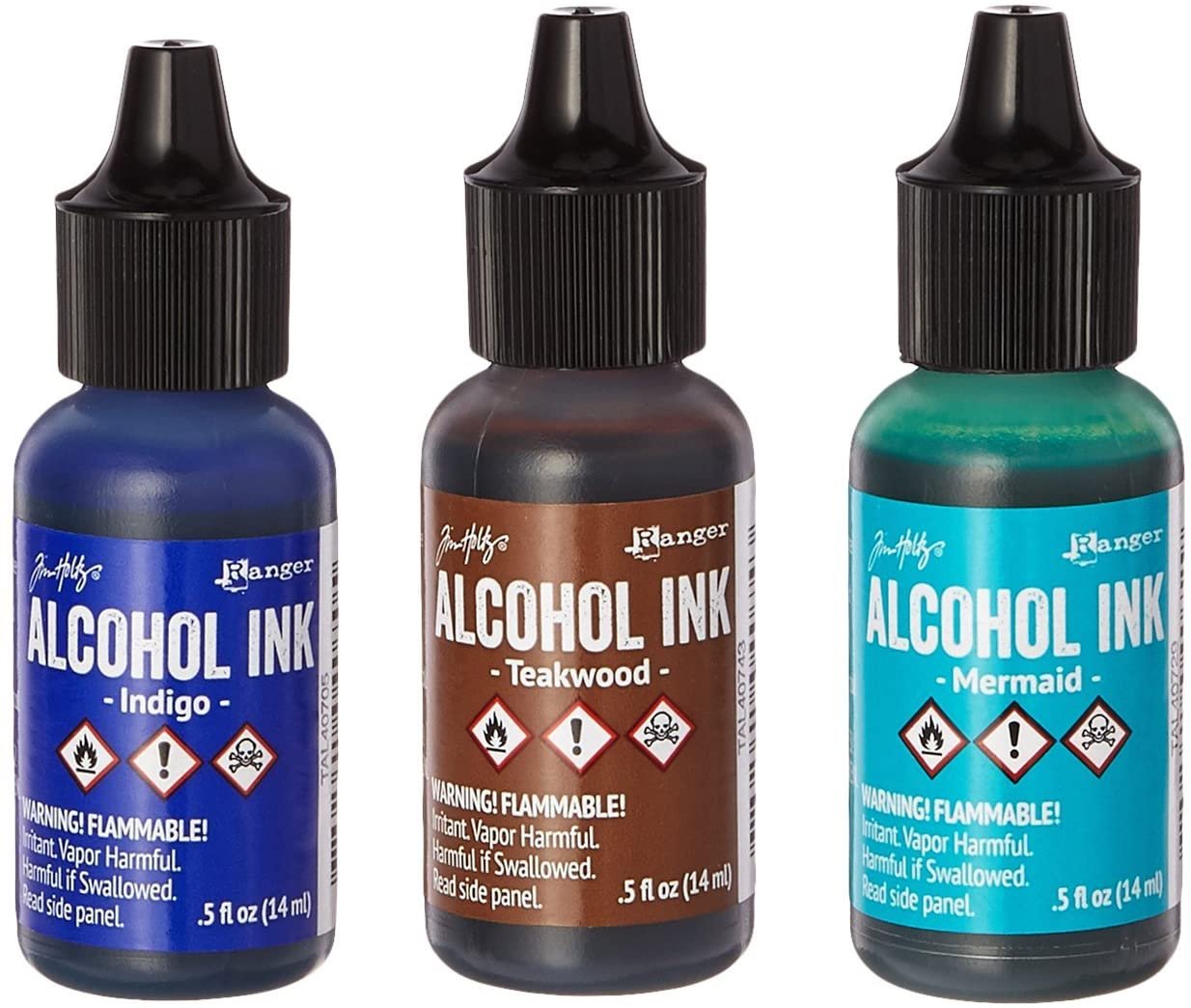 RANGER-Tim Holtz Adirondack Alcohol Ink: 3pk Brights. Acid free fade resistant fast drying transparent inks specially formulated to create a colorful polished stone effect. Ideal for multiple surfaces including glossy paper metal shrink plastic glass and more. Easy to use precision top bottles. 0.5oz/14.78ml each. Made in USA.