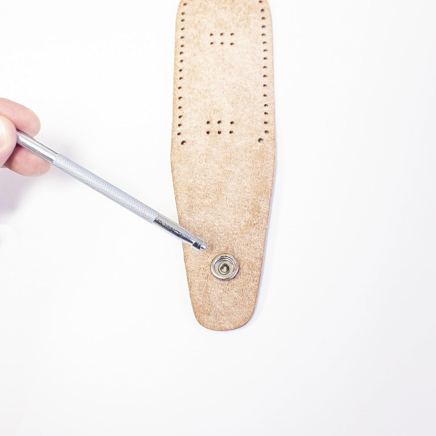 The snap setter kits are a perfect all in one kit, each contains one quality zinc plated solid steel setter, anvil, and 20 four piece sets of heavy-duty line 24 snaps. The 24 snaps are 5/8" diameter. The 24 snaps are better suited for holsters, cases, belts, and other heavier leathers.