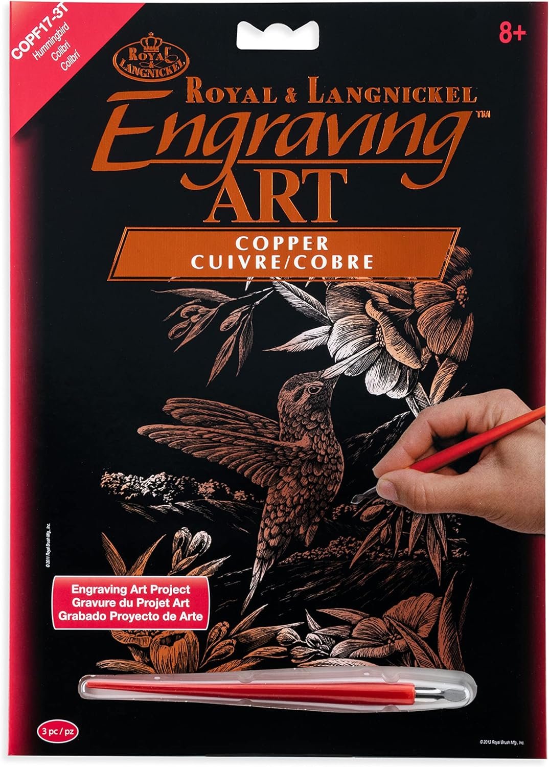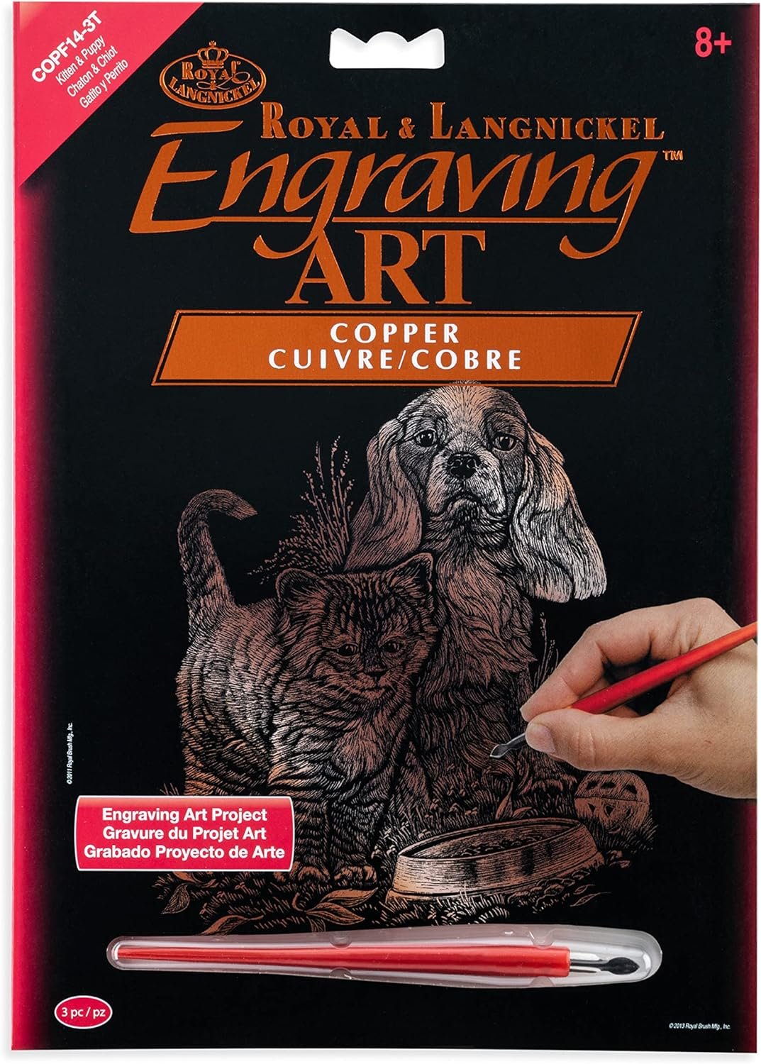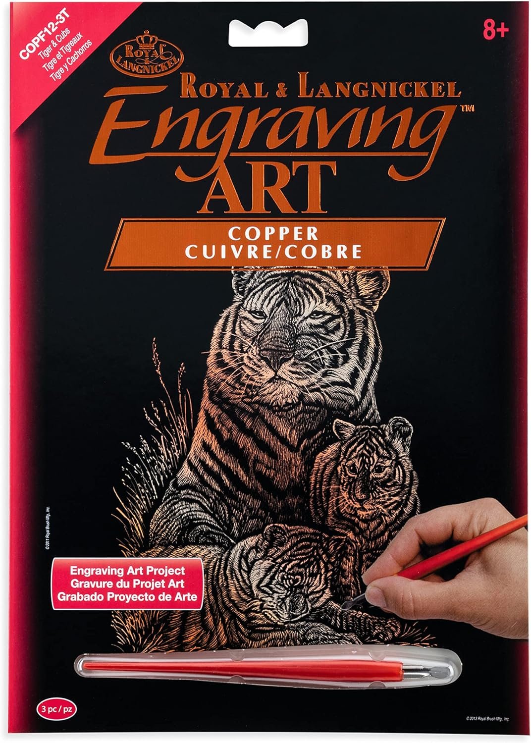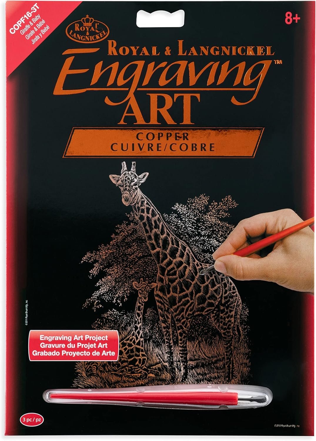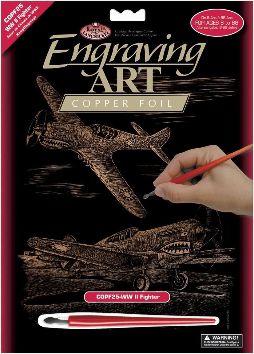 Royal & langnickel engraving art makes it easy to be an artist simply use the tool in the kit to scrape away the preprinted design, revealing metallic Copper color below. In no time patterns come to life with realistic depth, dimension and textures. With the design preprinted onto the board, there is no need to worry about subject. The 8-Inch by 10-Inch format works beautifully in standard frames when completed. Engraving art are ideal for children, adults and everyone between. And, because there's no paint and brushes, they make the ideal travel art project.