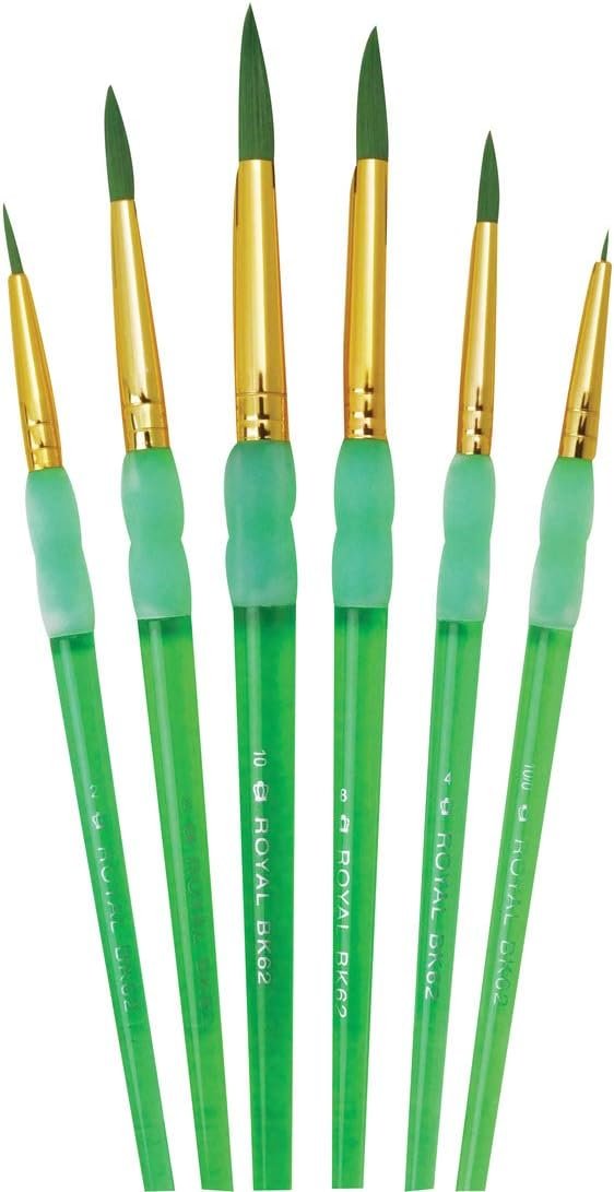 Royal Brush Big Kids Choice Deluxe Round Synthetic Paint Brush Set, Assorted Size, Green, Set of 6