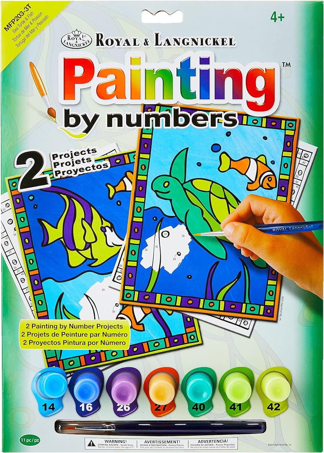 Royal Brush My First Paint By Number Kit 8.75 by 11.375-Inch-Sea Turtle and Fish, 2/projects(422094)