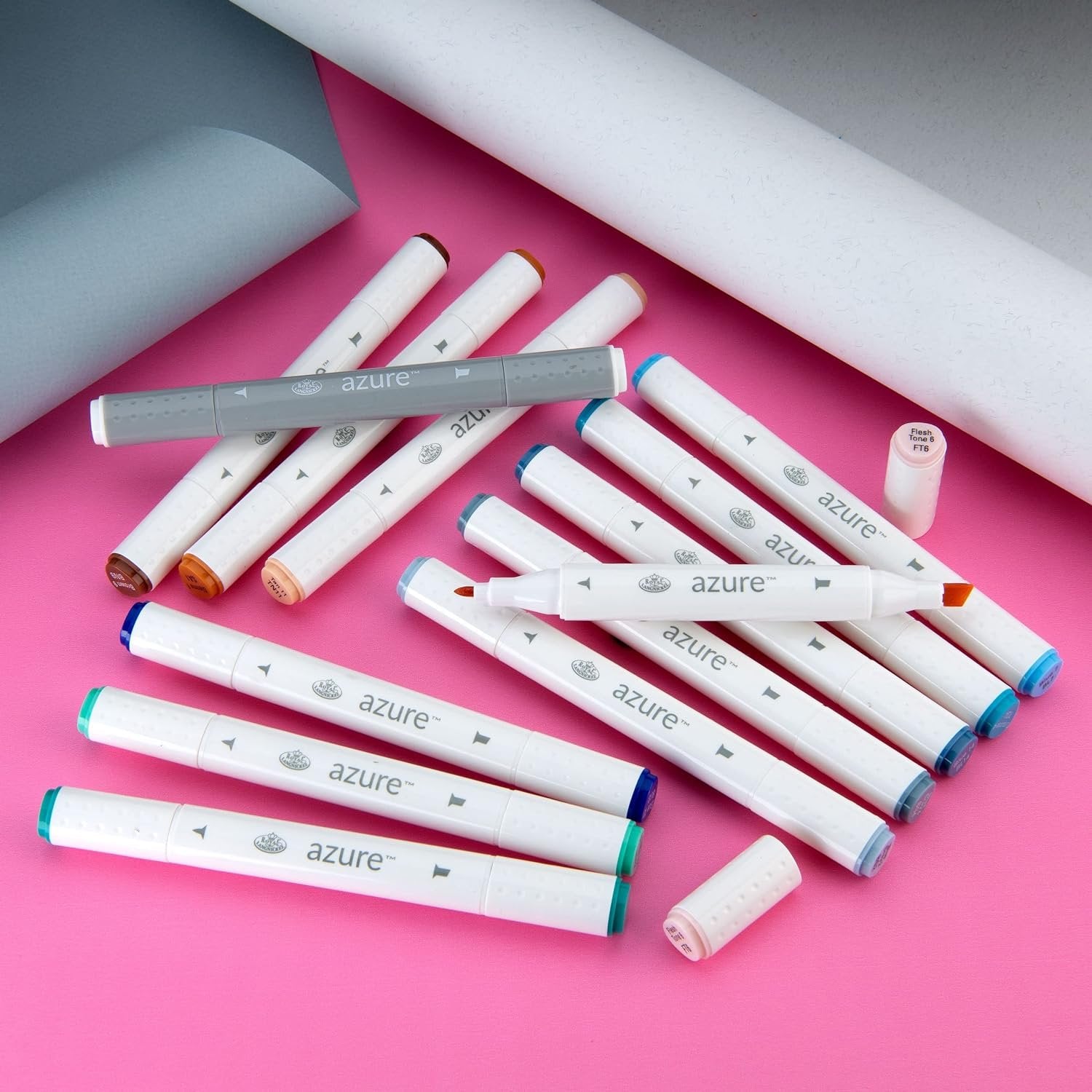Royal & Langnickel Azure, 13pc Dual-Tip, Alcohol Based Marker Set, Includes - 12 Markers & 1 Blender, Seashore Colors