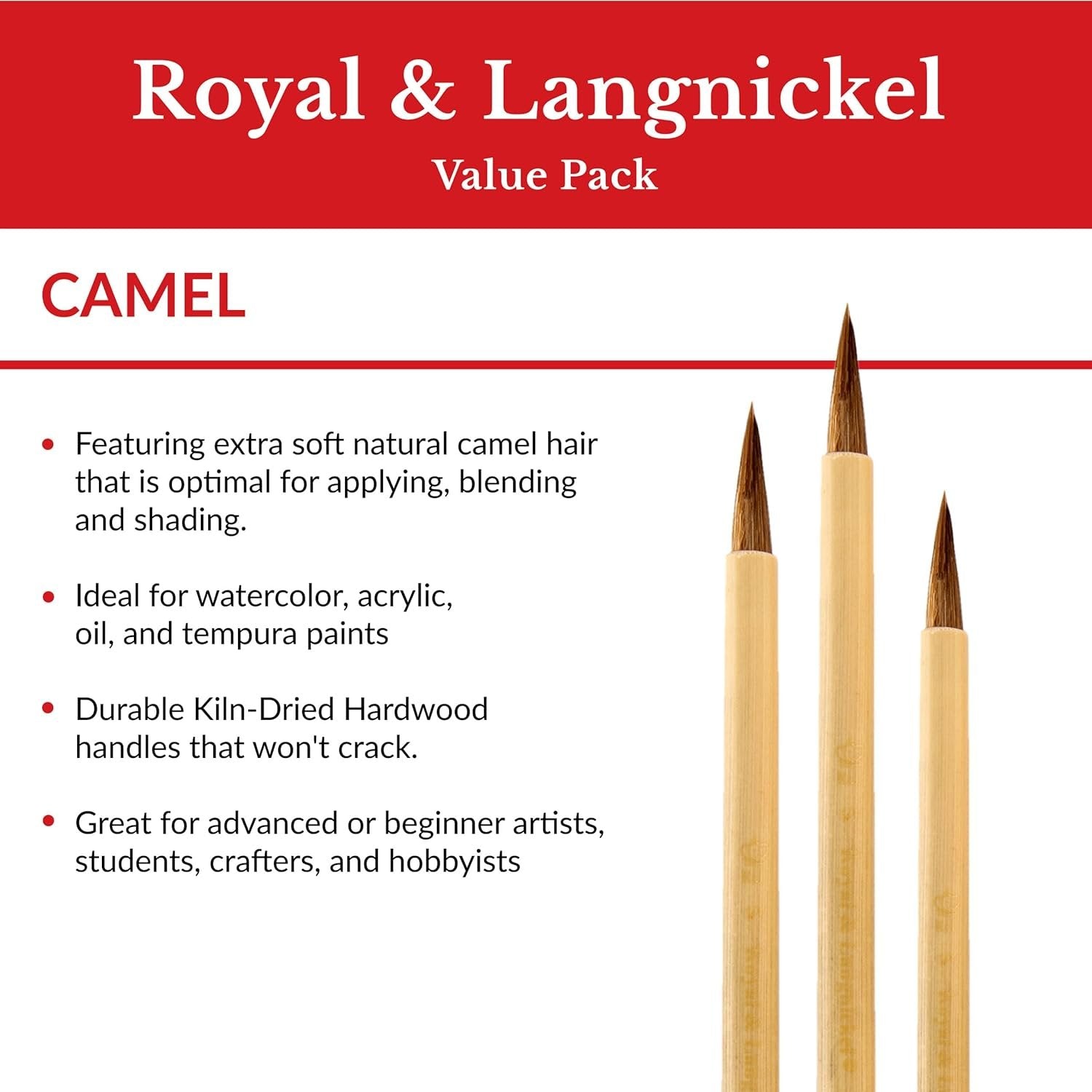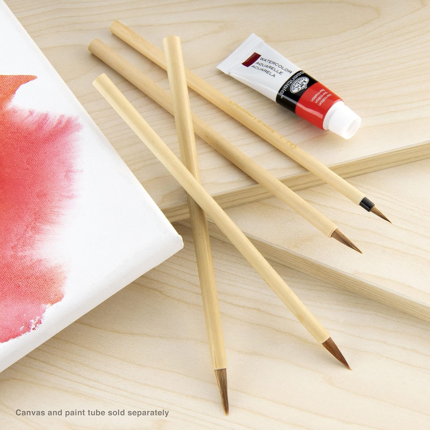 Royal's zip n' close brush sets feature high value, quality constructed brushes. These sets are offered in short handle or long handle, with kiln-dried wood handles or acrylic handles and are available in a number of various hair types. All brushes come standard with a quality seamless aluminum ferrule. Ideal for artist's, students and crafters, these brush sets are packaged in a sturdy vinyl pouch with a zip n' close seal for travel and storage. Whether your into fine art, decorative art, or crafting, with zip n' close you're sure to Find the perfect sets for your projects. Set includes bamboo brushes brown hair 1, 3, 4, and 5.