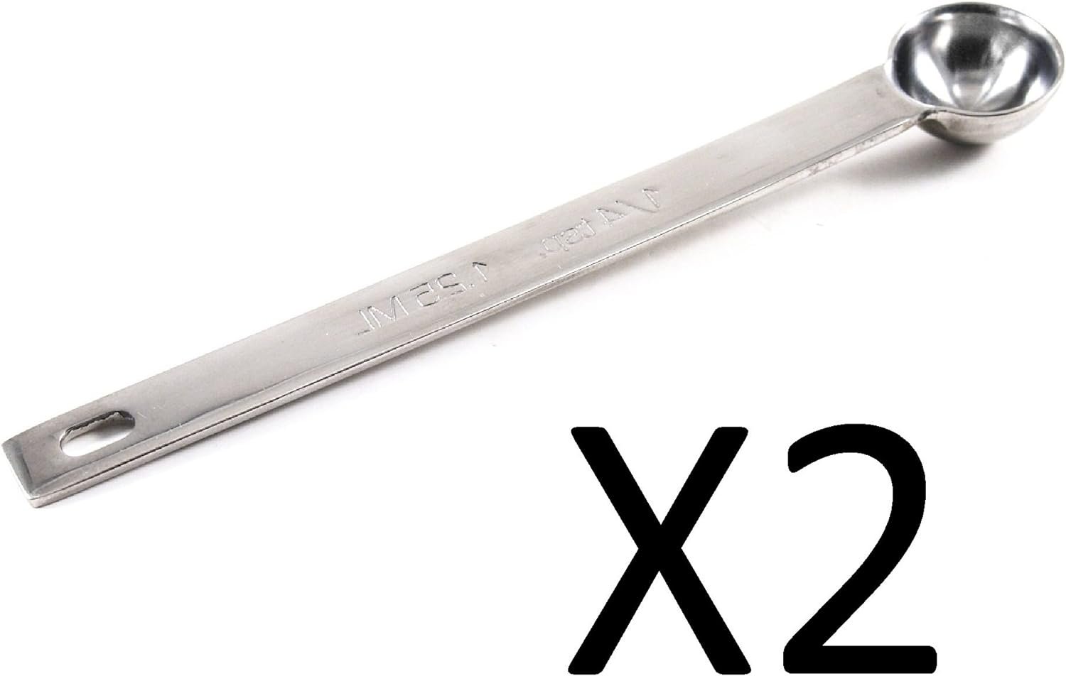 RSVP Measuring Spoons 1/4 Teaspoon Stainless Steel Single 5" L Spoon (2-Pack),Silver