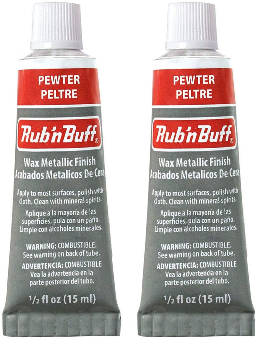 This is for 2 pcs. Rub 'n Buff The Original Wax Metallic Finish- Color: pewterMade from imported carnauba waxes, fine metallic powders, and select pigments, Rub 'n Buff gives almost any surface a new look in minutes.This unique blend gives objects decorated with Rub 'n Buff a finish that no paint can duplicateIt can be applied to any clean, dry surface as well as over previously painted surfacesOne 1/2 oz. tube covers up to 20 square feetIt's easy to applyJust rub onto any surface with finger or soft cloth, then buff to a lustrous finishRub 'n Buff is ideal for picture frames, stenciling, faux finishing, antiquing, home decor, restoration, and crafts