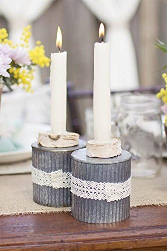 Rustic Tin Vase, Corrugated Sides, 3.25x3.25", Galvanized Metal, 6pk