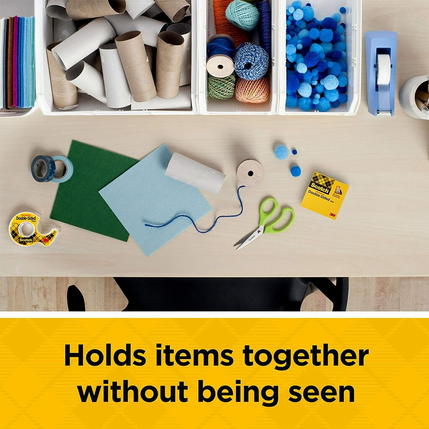 For the light duty attaching you do for activities around the house, get it done fast and get it done right without the drips, clogs and air bubbles of glue. Scotch Double Sided Tape the neat, clean, strong and long lasting way to take care of school projects, scrapbooks, photo albums all those important presentations that need to come together. Scotch Double Sided Tape is easy to use and won't create a mess like the way glue does. It smoothly glides off the easy to use Scotch Tape dispenser (included), cuts cleanly and right where you want to cut so no waste. For a better way to present all the wonderful things in life.