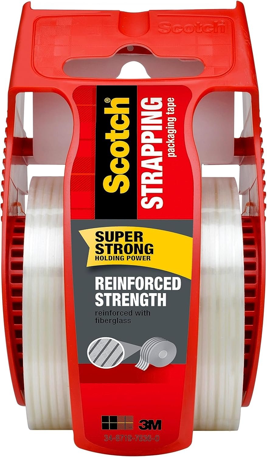 Scotch Reinforced Strength Shipping Strapping Tape 50-3M with Dispenser, Clear, 1.88"x 360 in, 1 Dispenser/Pack