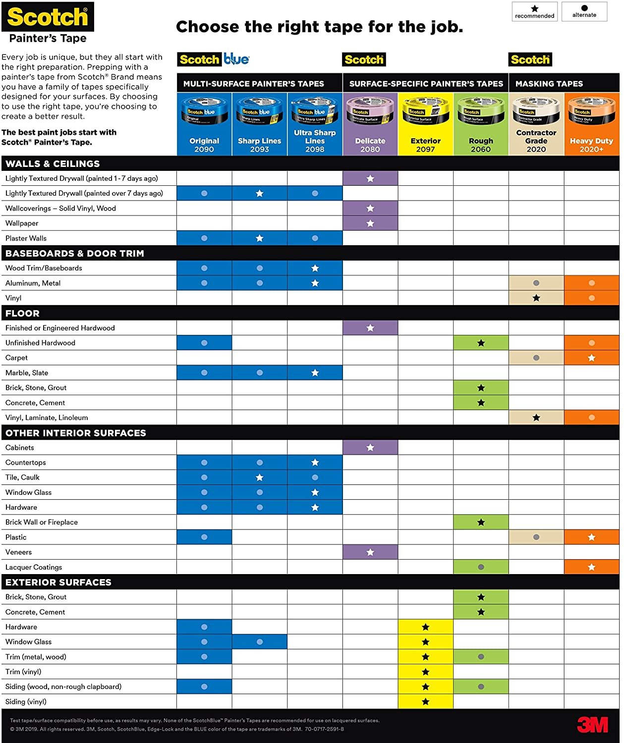 ScotchBlue Original Painter’s Tape is the tape that DIY painter’s and pros have loved for more than 30 years. Whether you’re protecting your wood trim, painted walls, tile floor, or glass windows, this versatile multi surface tape can stay on surfaces for up to 14 days and then removes easily without leaving any sticky residue behind. Help protect your surfaces while bringing your creative vision to life with the help of ScotchBlue Original Painter's Tape.