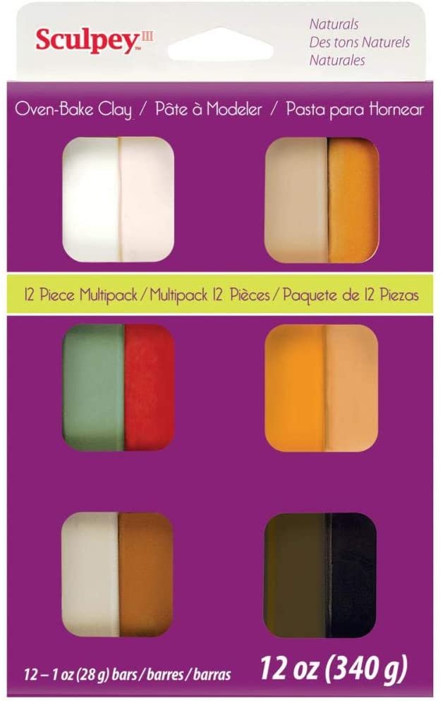 - ✅ SCULPEY CLAY - Sculpey III Naturals Collection. Contains 12x 1-ounce bars. Bakes hard and takes on a matte, bisque type finish. Shape, bake and once cool can be sanded, drilled, carved and finished with sculpey brand glaze. Soft and pliable, works and feels like ceramic clay but will not dry out when exposed to air.