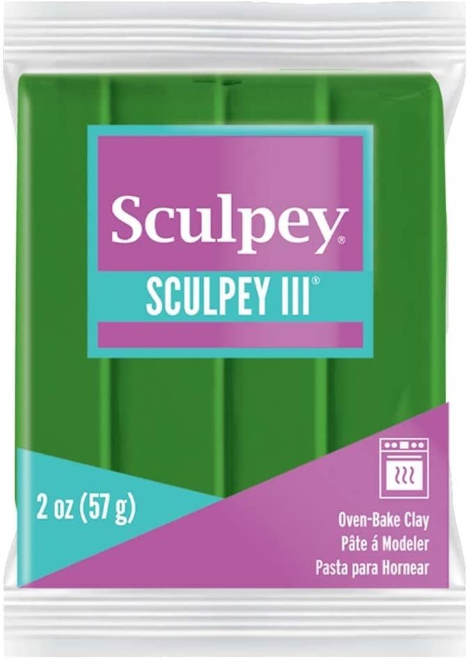 Sculpey III Polymer Oven-Bake Clay, Leaf Green, Non Toxic, 2 oz. bar, Great for modeling, sculpting, holiday, DIY, mixed media and school projects.Great for kids & beginners!