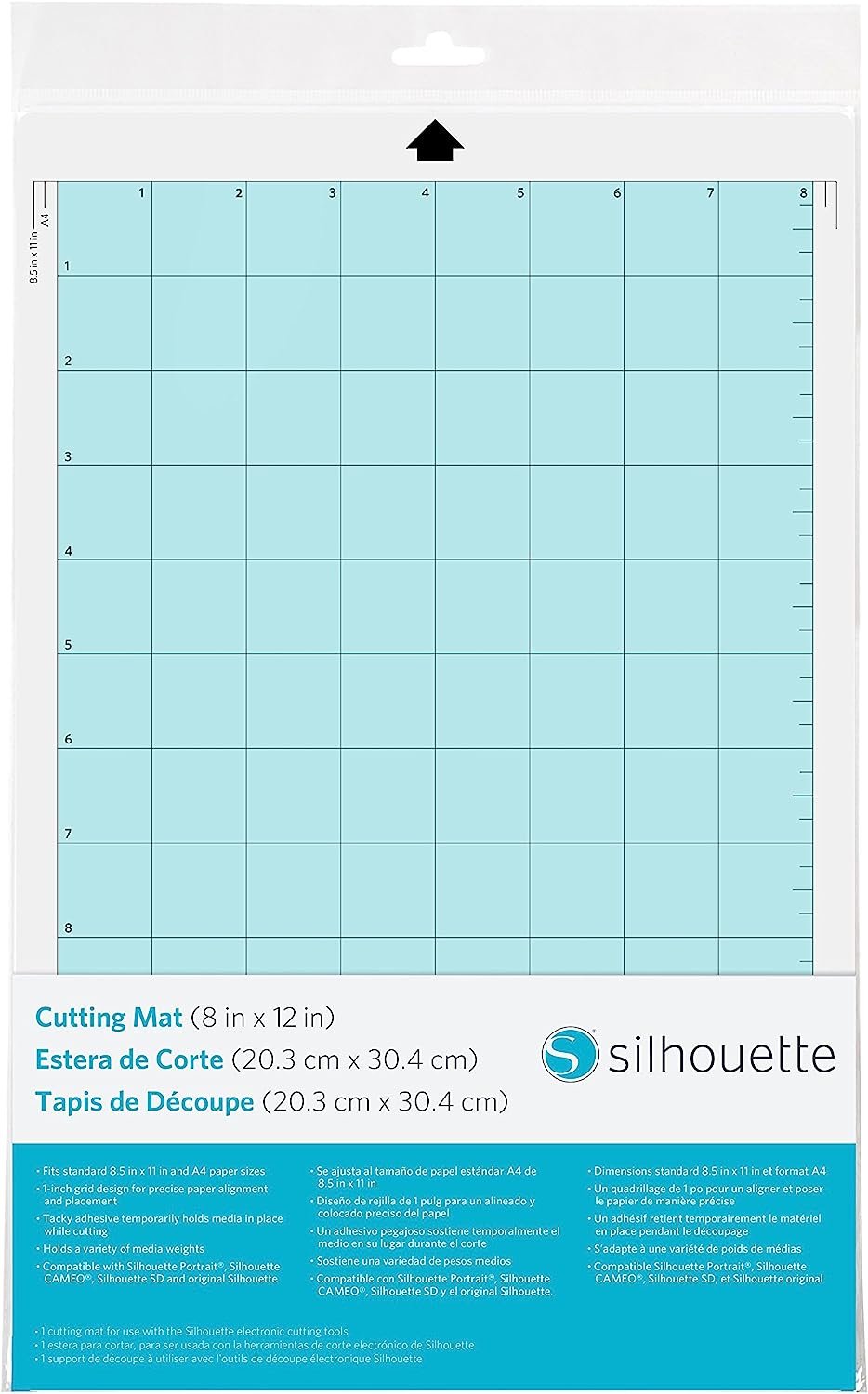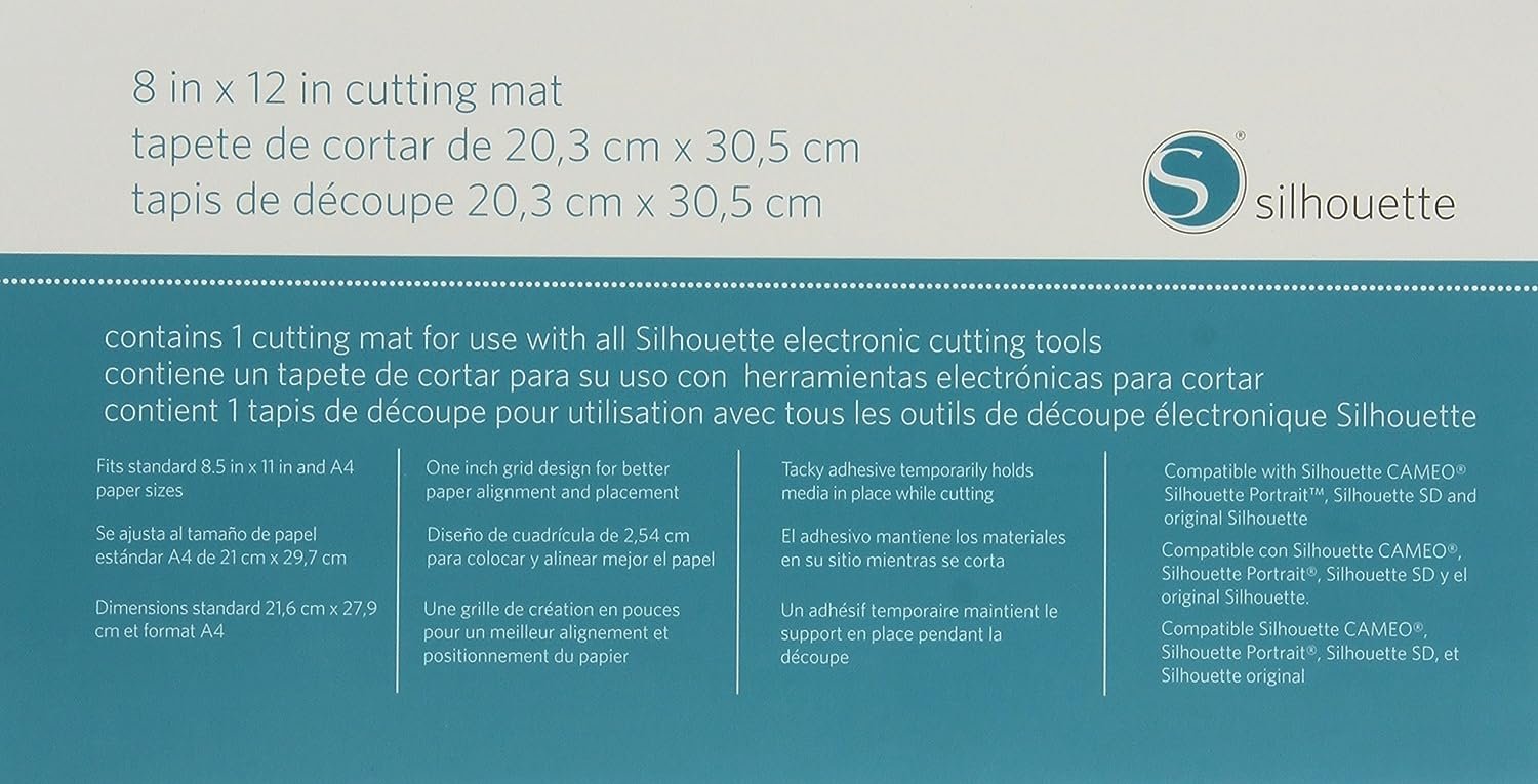 This cutting mat features a 1 inch grid design for better paper alignment, tacky adhesive to hold media in place, and it fits standard 8.5x11 inch and A4 paper sizes. It is to be used with the electronic Silhouette cutting tools (not included). This package contains one 8x12 inch cutting mat. Imported.