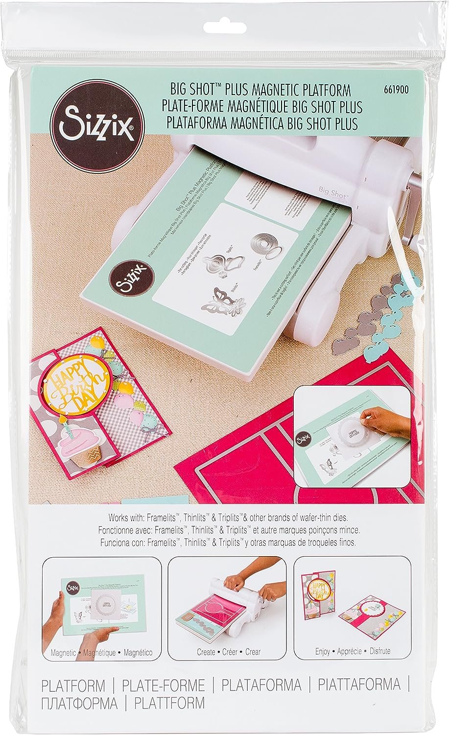 For perfect registration, the Sizzix Magnetic Platform uses high-grade magnets to hold Thinlits, Framelits and other chemically-etched, wafer-thin dies securely in place during cutting. This makes them instantly compatible with the Big Shot Plus and Big Shot Pro machines (sold separately). The diagrams on the Magnetic Platform and its tabs offer easy guidelines about how to make the perfect Sizzix sandwich. This package contains one 15x9x.625 inch magnetic platform. Imported.