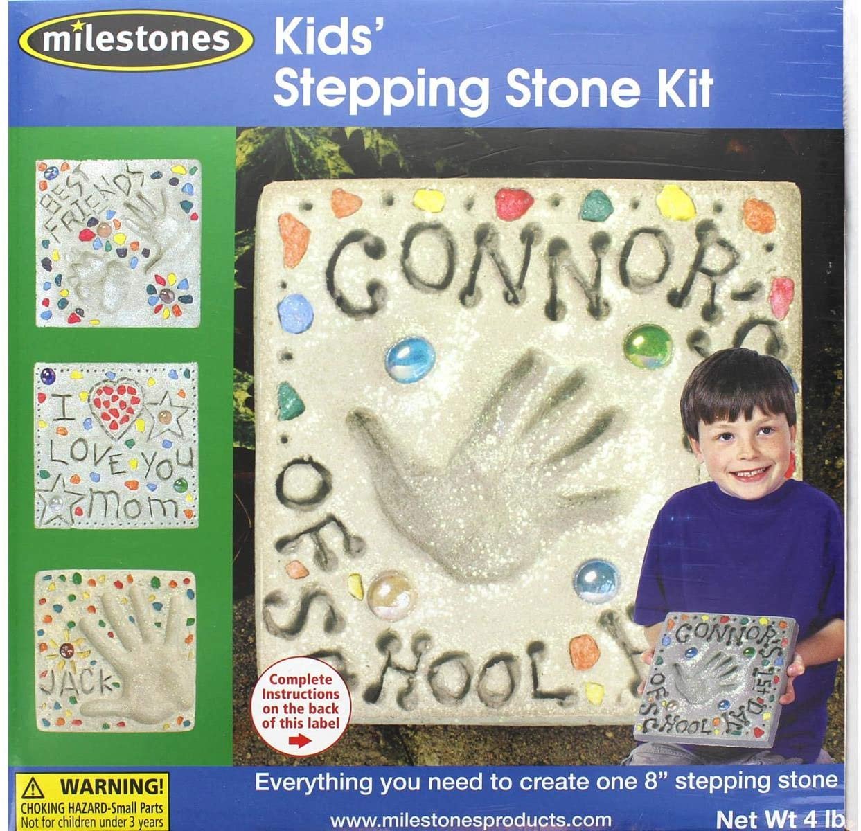 Create a treasured childhood keepsake in 3 easy steps, simply mix, pour, and decorate. Kit contains: 3.5 lbs. of stepping stone mix, 8" reusable plastic mold, 2 oz. rainbow rock, 1 oz. glass gems, 1 oz. glitter pot, 1 wooden mixing paddle, 1 writing tool, and easy-to-follow instructions.