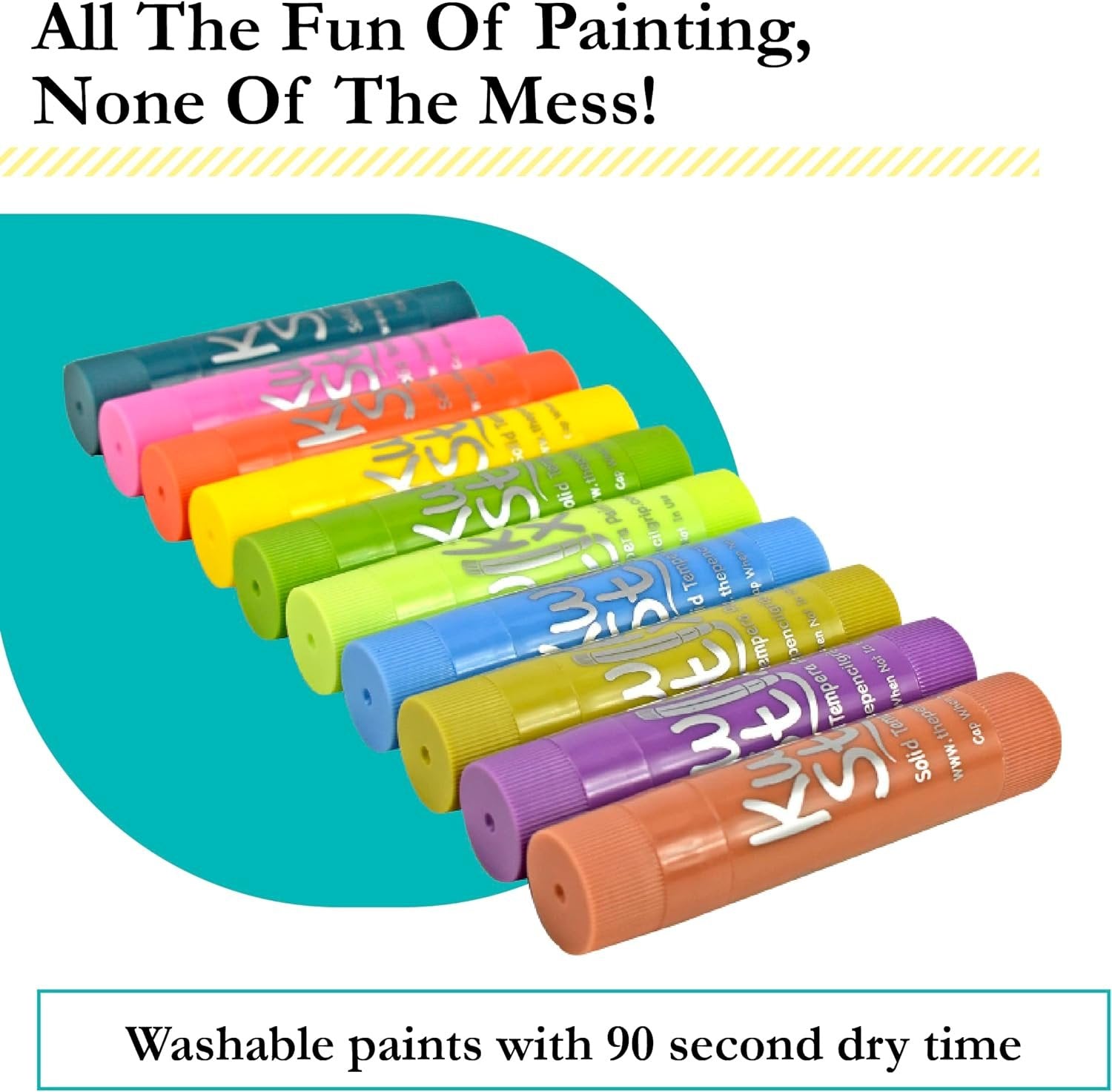 - Kwik Stix Paints: Kwik Stix Tempera Paint sticks take the mess out of painting while keeping all the fun. These quick-drying paints dry in under 90 seconds, providing mess-free fun for kids of all ages.