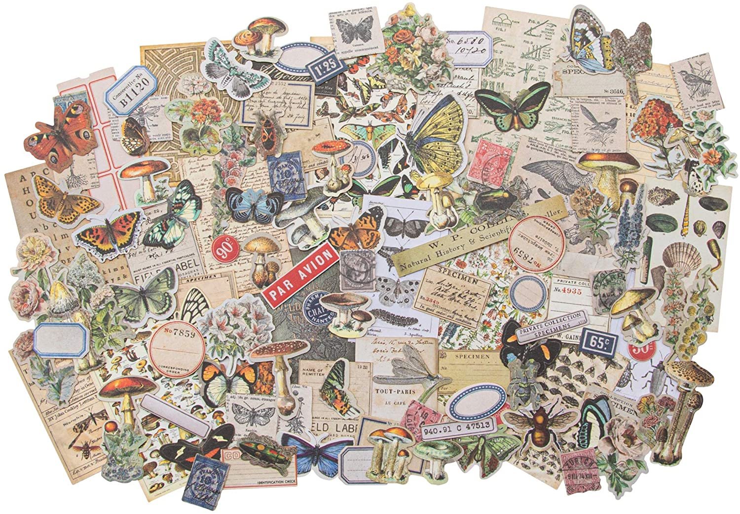 Infuse a classic, vintage feel into your craft projects, using the Tim Holtz Snippets Ephemera Pack. This collection printed mini memorabilia includes a garden of delightful butterflies, snails, shells, leaves, and other small bits of flora.