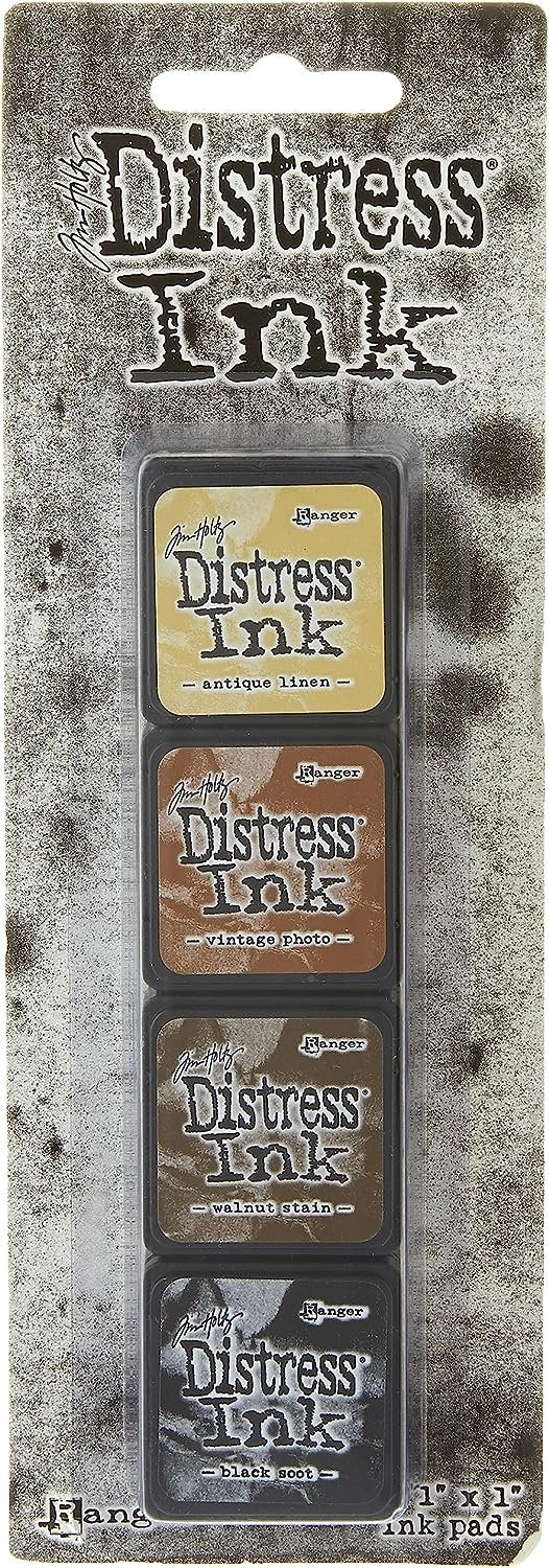 Features the same unique, water- based dye ink formula used in the full-size pads, but in a convenient stackable pad. The raised felt makes it easy to use on smaller craft projects and can be re-inked with coordinating Distress Ink Reinkers. Available in a variety of colors, each sold separately. This package contains Tim Holtz Distress Mini Ink Kits, four 1x1 inch ink pads in four different colors. Conforms to ASTM D 4236. Acid free. Non-toxic. Made in USA.
