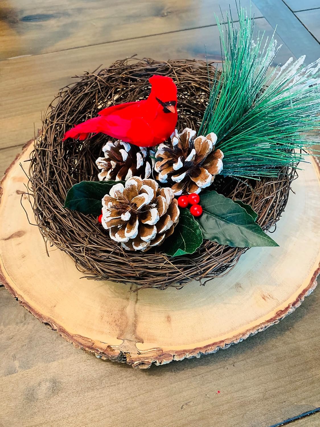 Mushroom/Feather Bird, Male Cardinal 5" (12.7 cm) Red on wire (right facing, left facing) 1 piece.