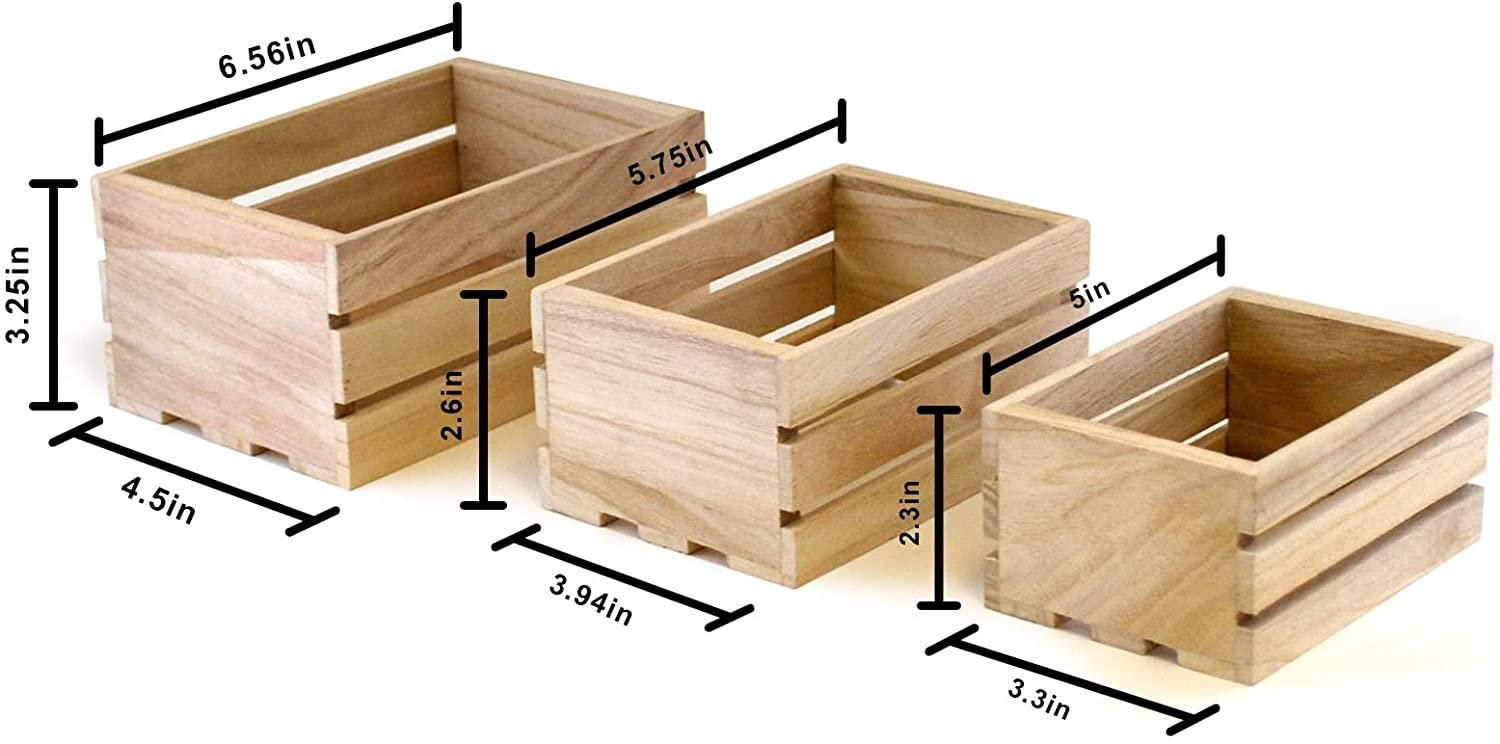 - Package contains one (1) 3x6-3/4x4-1/2 Inch crate, one (1) 2-3/4x5-3/4x4 Inch crate, one (1) 2-1/4x5x3- 1/4 Inch crate.