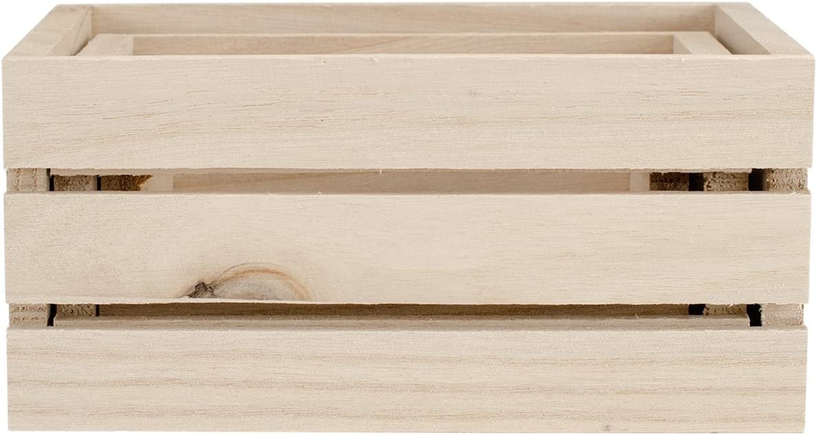 Multicraft imports-wood craft crate caddy set. These unfinished crates are ready for your decorations. This package contains one 3x6-3/4x4-1/2 crate one 2-3/4x5-3/4x4 inch crate one 2-1/4x5x3- 1/4 inch crate. Imported.