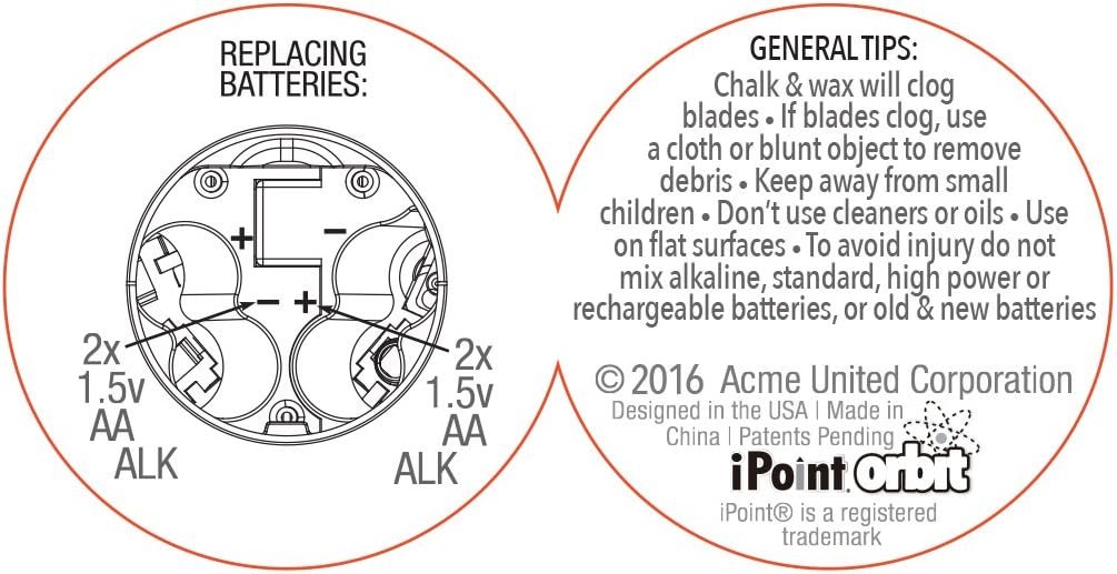 The Westcott iPoint Orbit battery Pencil sharpener features durable titanium-bonded blades, an Ez-View shavings reservoir, and Auto-Sensor shut off. Westcott develops home and office products unmatched in style, design and performance. We continue to deliver results that are both inspirational and functional.