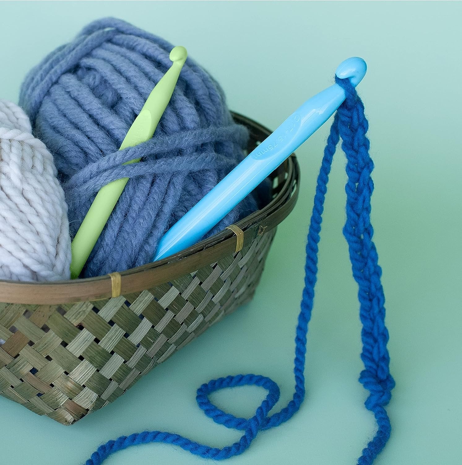 Boye Jumbo Plastic Crochet Hook Set. These plastic crochet hooks are low cost and lightweight- perfect for a beginner. This package contains one US P/11.5mm plastic crochet hook and one Q/15.75mm plastic crochet hook. Imported.