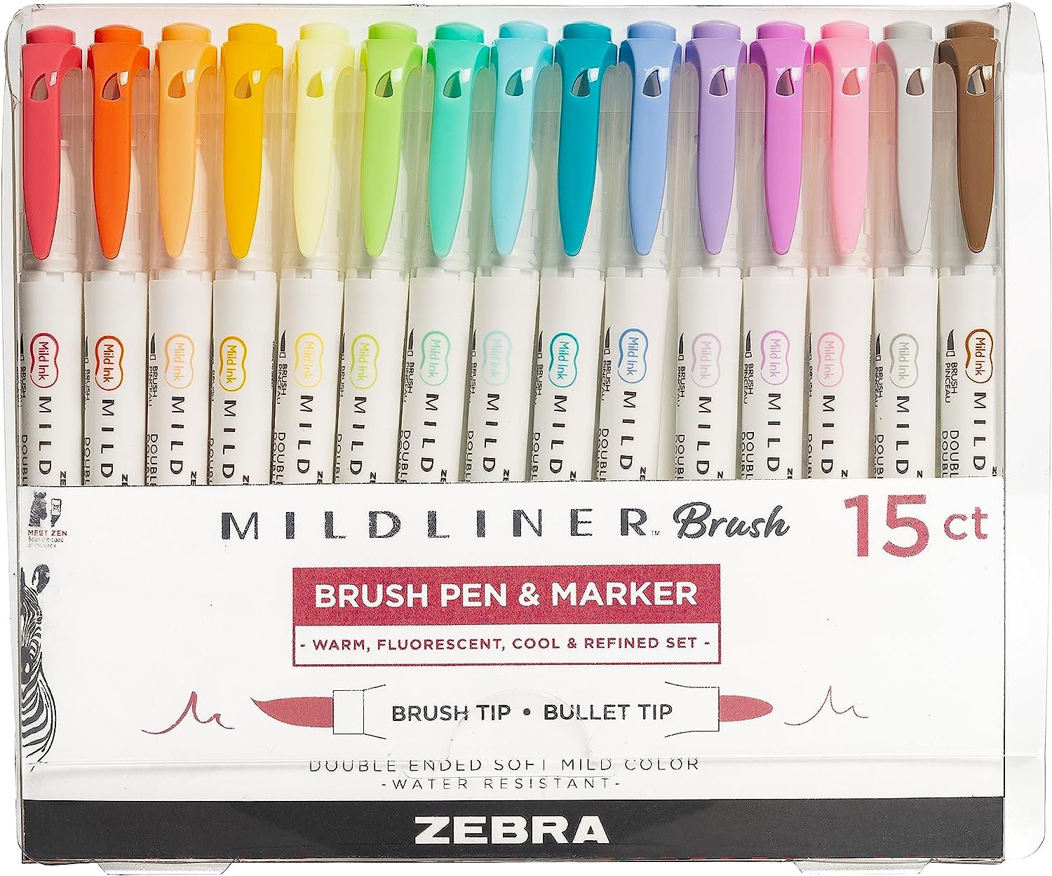 Brush pen and marker features a double-ended design to provide both a paint brush-like tip and fine marker in one writing tool. Soft, mild ink is translucent to easily layer colors and will not bleed through. Brush tip is like an artist's brush to create thick or thin strokes. Fine tip creates sharp, precise lines for detailed use. Pigment-based ink is water-resistant and acid-free for lasting results.