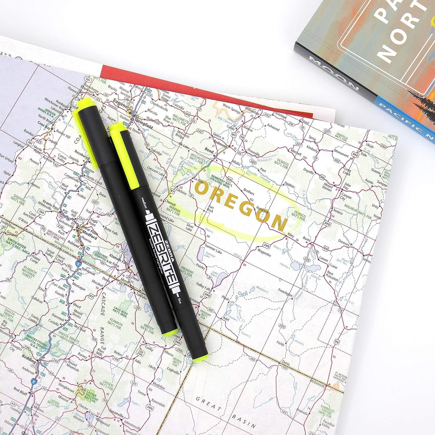 Zebra’s Zebrite highlighters offer color vibrancy with double ended convenience and are ideal for bibles, legal books and textbooks. Featuring a fine bullet and medium chisel point in one pen, Zebrite has the perfect tip for precise highlighting and broad marking. No bleed highlighters offer vibrant color lay-down that jumps off the page without showing up on the other side. Highlighter colors are AP Certified Non-Toxic. The Zebrite non-bleeding highlighters are housed in a black, stylish barrel made with recycled materials. A convenient pocket clip makes it easy to attach the highlighter markers to textbooks, planners, clipboards or bags. Zebra’s double-ended highlighter pens are available in 5 different colors and are great for grading papers, studying, editing rough drafts, planning, and coloring.
