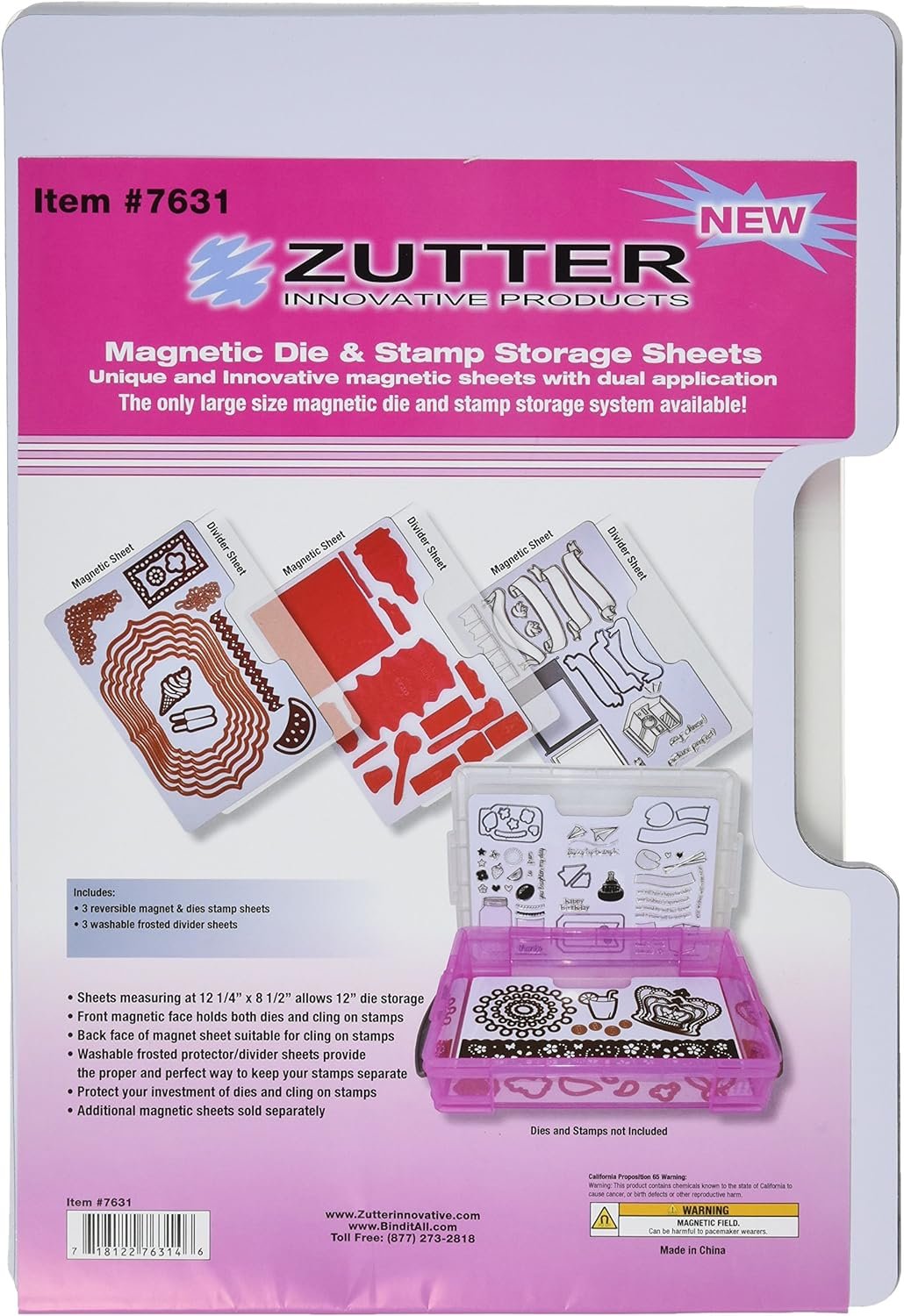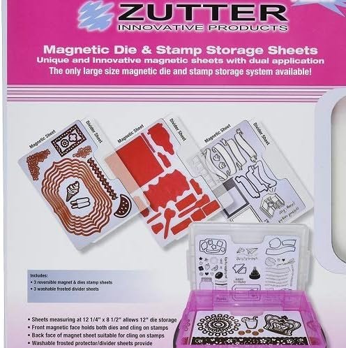 Store your die-cut and cling on stamps in this large size magnetic storage system! Fits perfectly in your Zutter magnetic die & stamp storage case. This package contains three 12-1/4x8-1/2 inch magnetic sheets and three 12-1/4x8 inch dividers. Imported.
